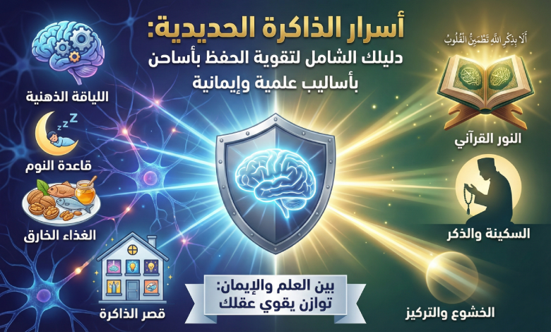 في هذا الدليل الشامل سنأخذك في رحلة لاستكشاف 6 أسرار تجمع بين العلم الحديث والتوجيهات الإيمانية لتحويل ذاكرتك من ذاكرة مؤقتة ضعيفة إلى ذاكرة حديدية صلبة لا تنسى